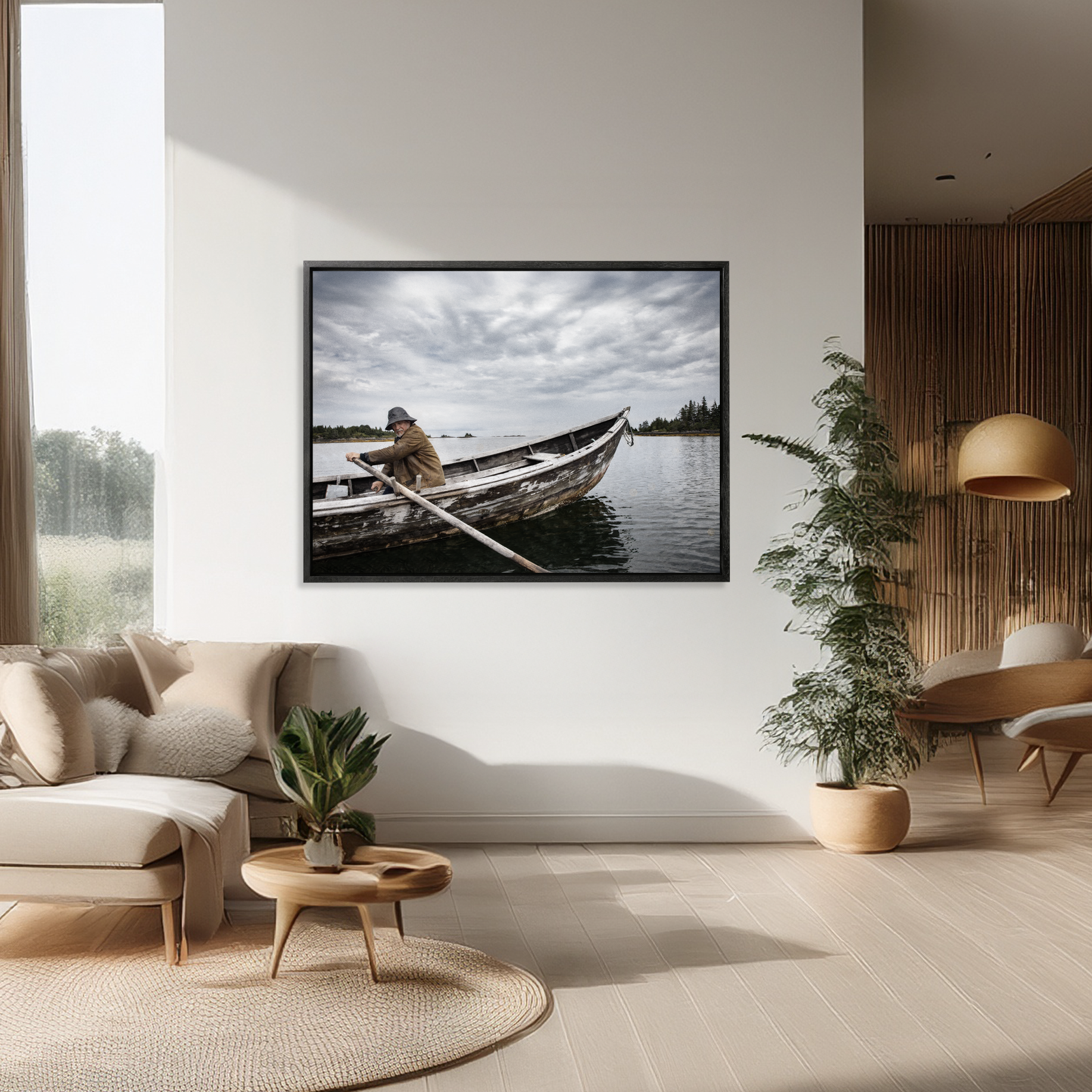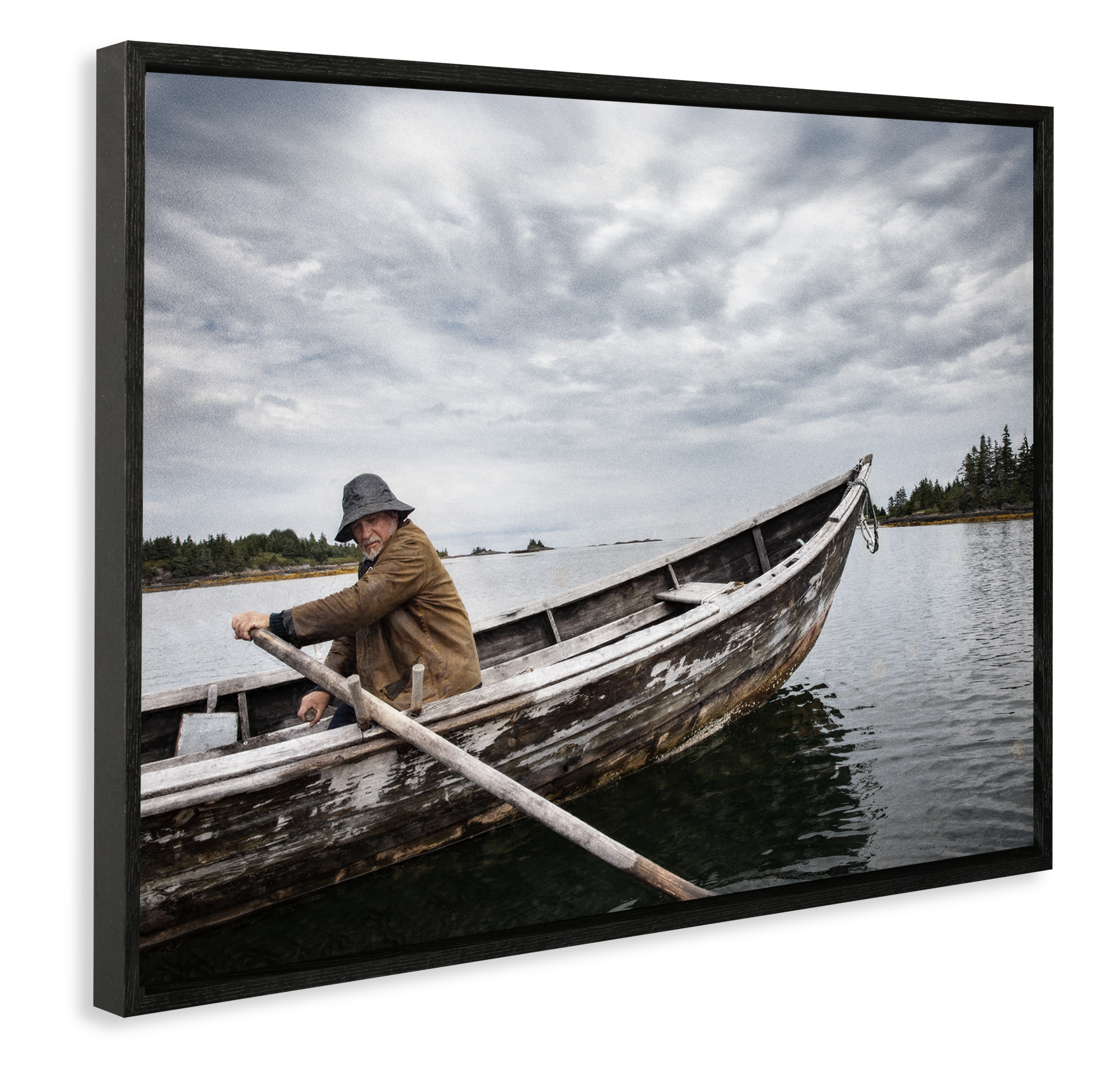 This artwork is printed on premium museum-quality giclee canvas and is presented in a solid oak float frame that is finished with hand rubbed dark bronze finish that is 2 1/2 inches deep. It is also available unframed.