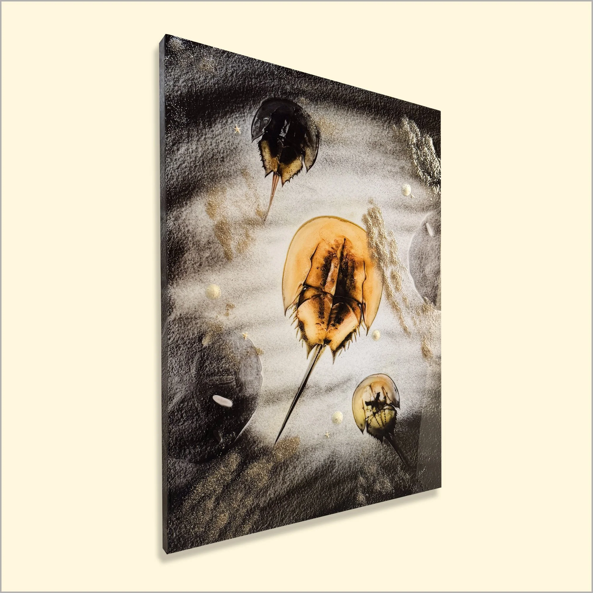 The archival resin coating adds a luminous finish and preserves the tactile qualities of the natural materials, enhancing depth and texture in the artwork.