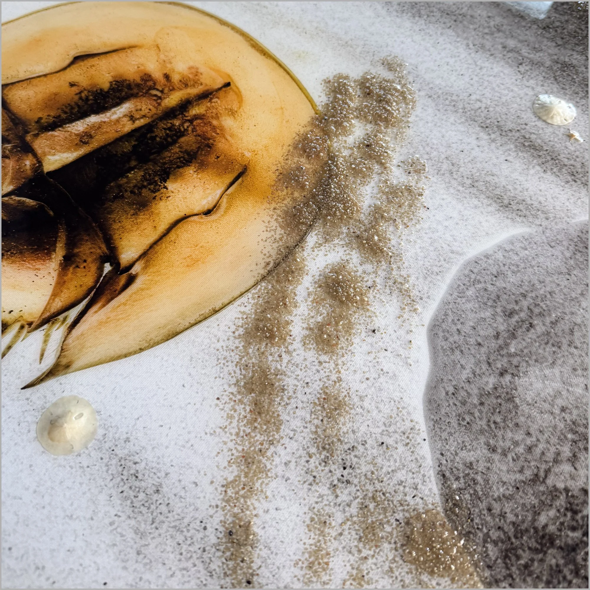 Close-up detail - Embedded beach sand and sand dollar(s) are added.